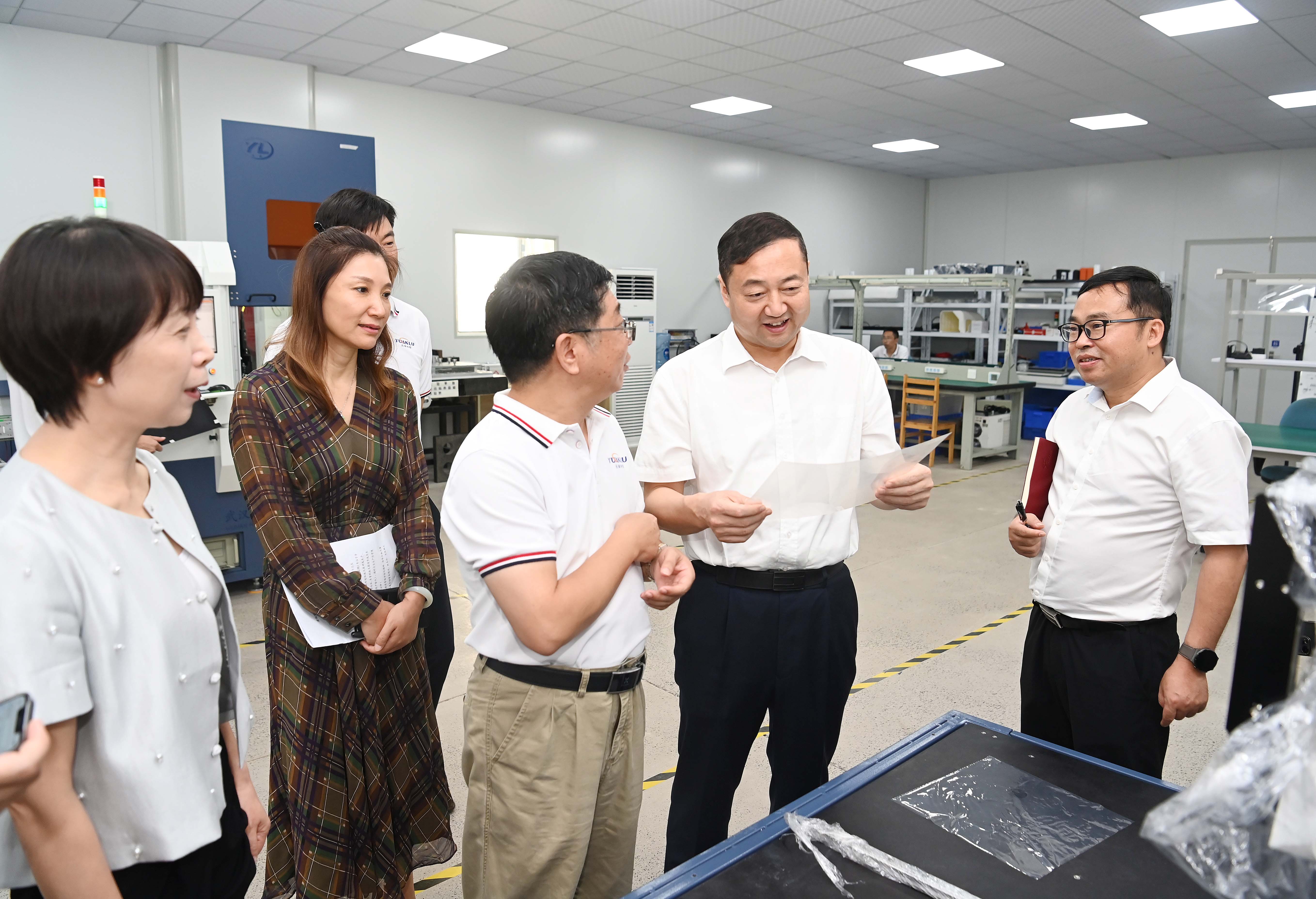 7月12日下午,武漢陽光明媚,濟寧市科技局副局長、兗州區委副書記蘇振、濟寧市兗州區科技局局長張景林、濟寧市兗州區地方金融監管局黨組書記鐘富、濟寧市兗州區地方金融監管局副局長王鑫陽、濟寧市兗州區科技局成果科科長李磊、中國人保財險兗州支公司副總經理祝成磊等一行蒞臨武漢元祿光電技術有限公司指導考察工作,元祿光電相關高管熱情接待并主持召開交流會。