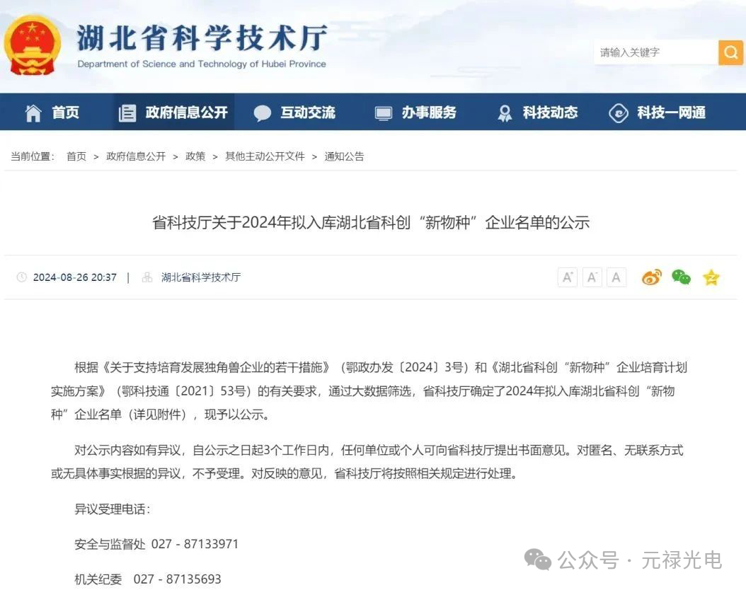 2024年8月14日,武漢東湖新技術開發區管理委員會發布了《武漢東湖新技術開發區管理委員會關于印發 2024年度“光谷瞪羚”企業名單的通知》,元祿光電憑借高速成長潛力和自主創新能力,成功入選2024年度“光谷瞪羚”企業榮譽稱號!