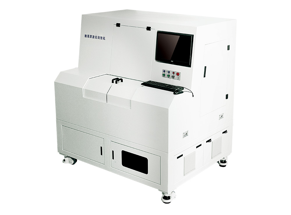 設備采用固體激光器,激光波長1064nm,適合對導電玻璃、薄膜進行精細激光刻蝕;采用自主研發的控制軟件、直接導入CAD 數據進行激光刻蝕,操作簡單,方便快捷;采用通過軟件實時調節振鏡與直線電機、電動升降工作臺的設計,加上真空吸附托盤裝置,能有效地解決激光刻蝕加工運行中的平穩性;采用獨特除塵系統設計,能保證玻璃、薄膜與工作平面的清潔。